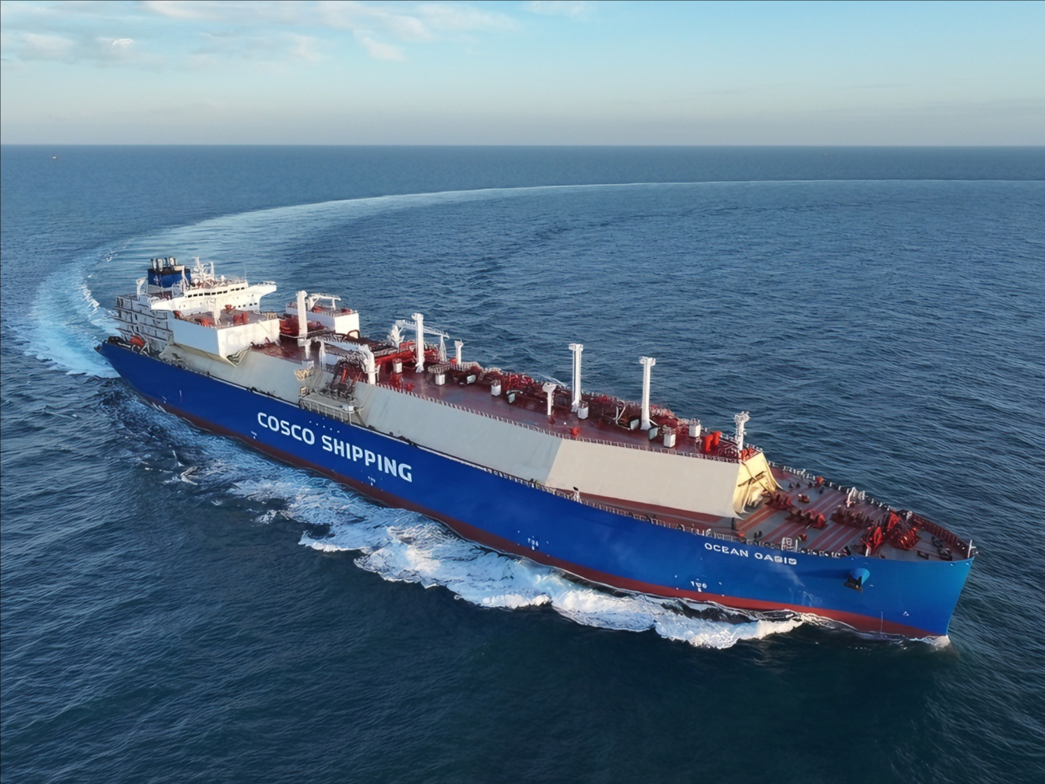 The Yuanhai Oasis, the second vessel built by Hudong-Zhonghua for COSCO Shipping and Sinochem, measures 295 meters in length, 45 meters in beam, and 26.25 meters in draft, with a speed of 19.5 knots. Upon entering service, it will further bolster China's independent transport capacity for clean energy and enhance the nation's bargaining power in LNG imports.